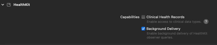 set up your iOS app target as an eligible target for Apple HealthKit Background Delivery.